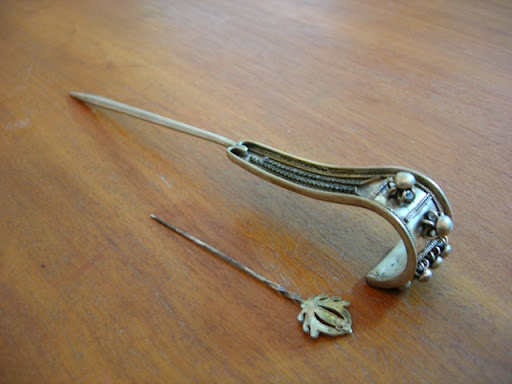這隻髮簪有趣的地方是,它很粗,簪針是尖的,又很硬,其實還真的蠻像是古代婦女用來自衛的武器。